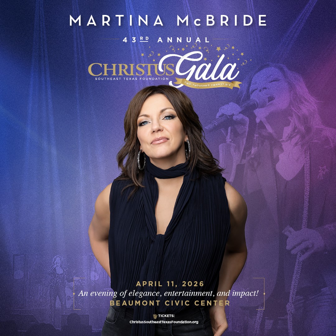Prepare for an unforgettable evening as Martina McBride takes center stage at the 43rd Annual CHRISTUS Southeast Texas Foundation Gala, an elegant night celebrating music, generosity, and community impact. The event will take place on Saturday, April 11, 2026, at the Beaumont Civic Center. The CHRISTUS Gala is a renowned black-tie affair that blends sophistication […]